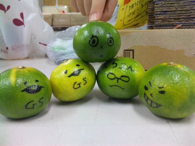 写真は、1回生のsarahが落書きしたみかんです。めっちゃかわいいですね!